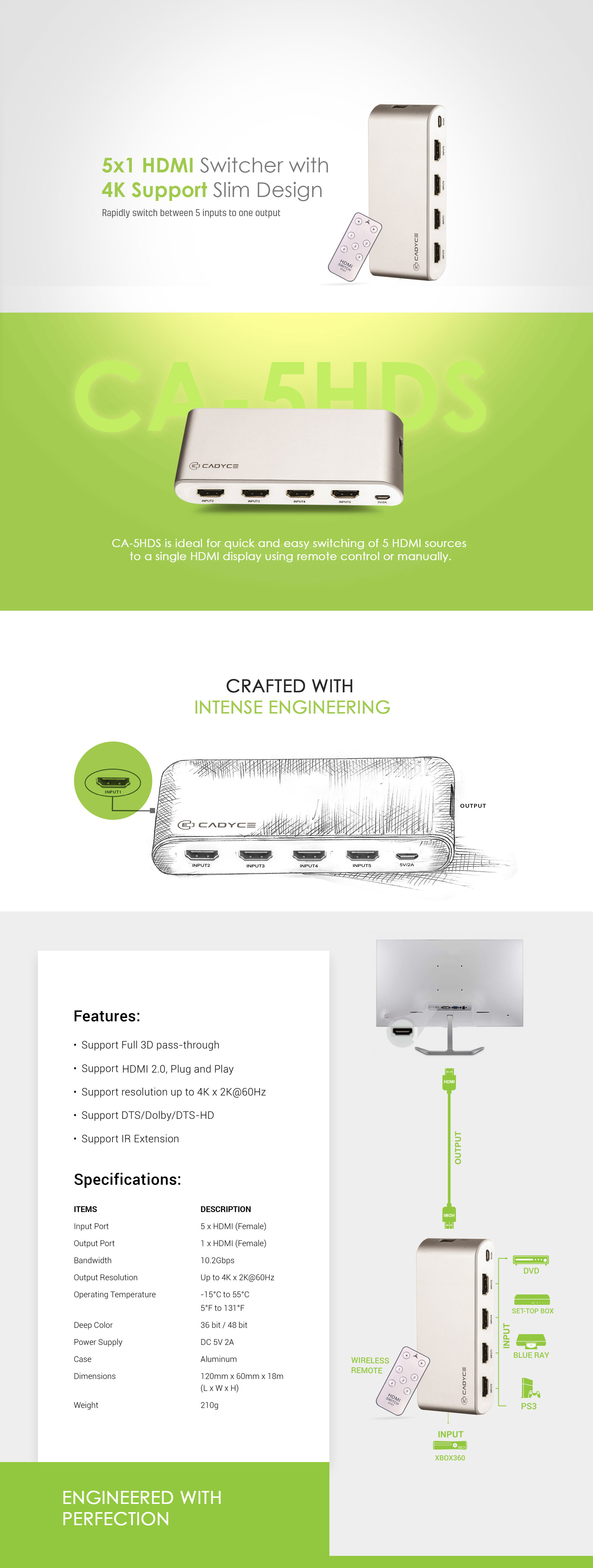 | Specifications | Input Port 5 x HDMI (Female) |