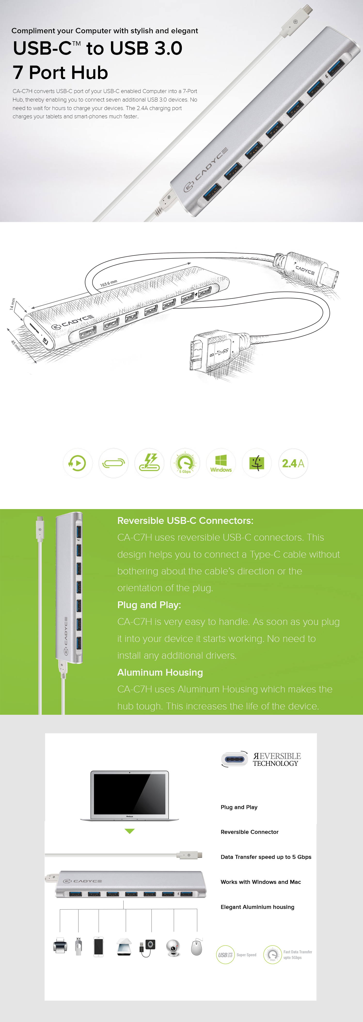 • Connect up to 7 additional USB 3.0 devices to your Macbook or Chromebook