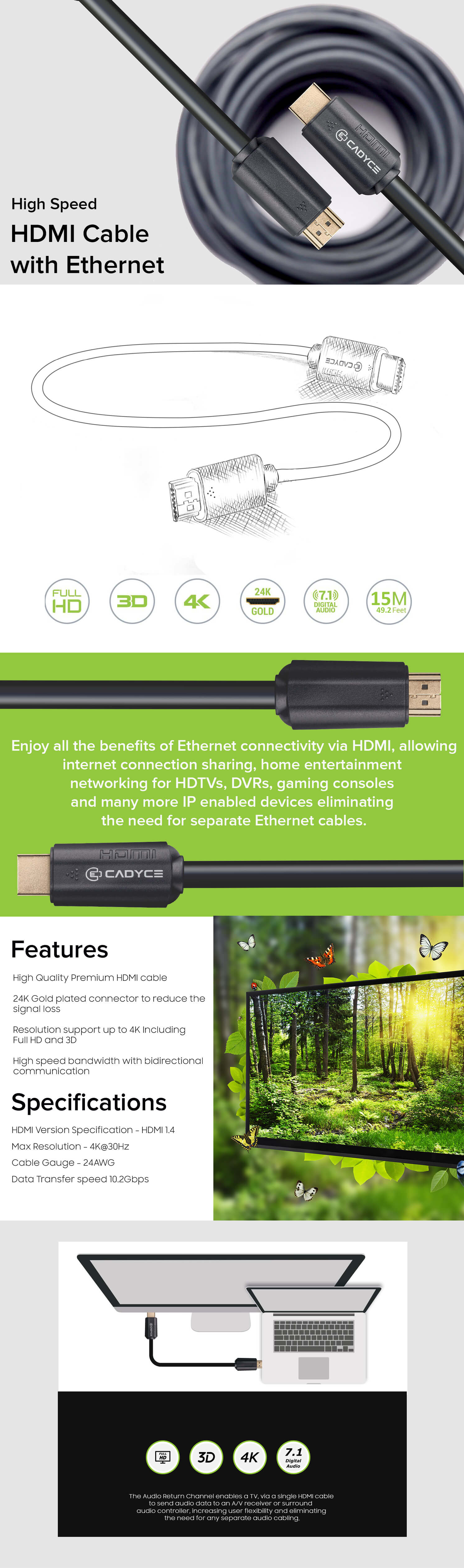 Share and enjoy your favorite movies from PC or laptop to big screen. The Cadyce HDMI® Cable gives you incredible picture quality and sound.