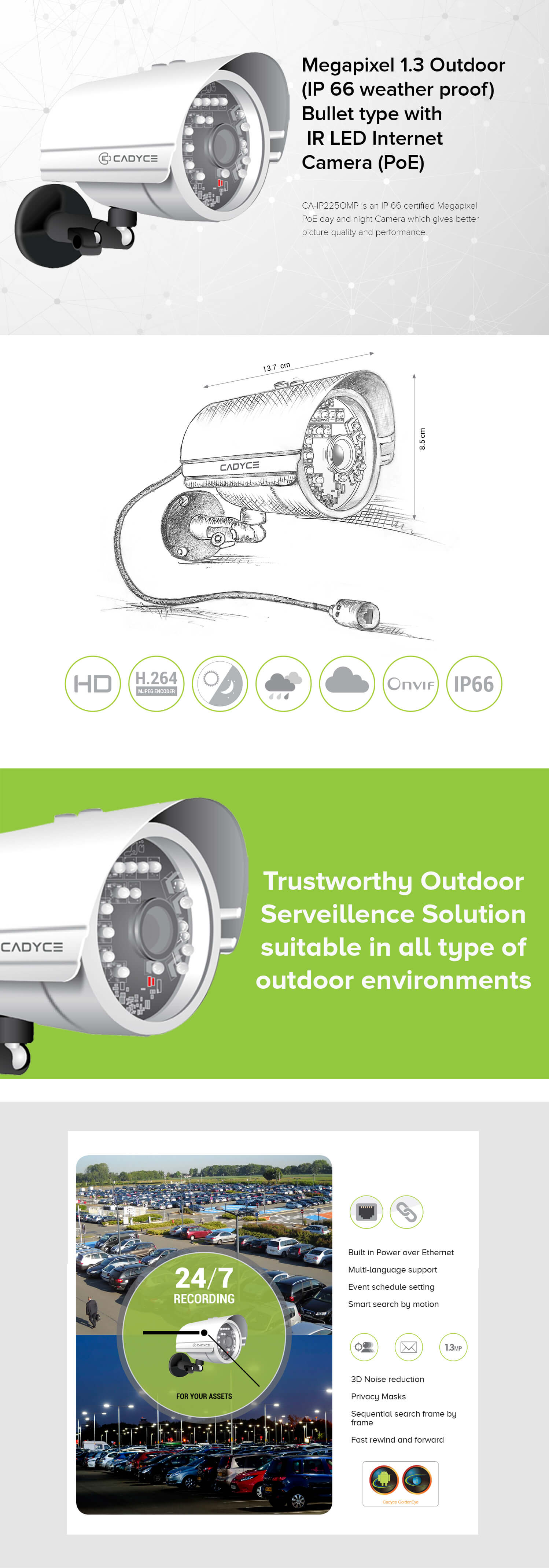 Megapixel (1.3M) Outdoor (IP 66 weather proof) Bullet type with IR LED Internet Camera (PoE)
