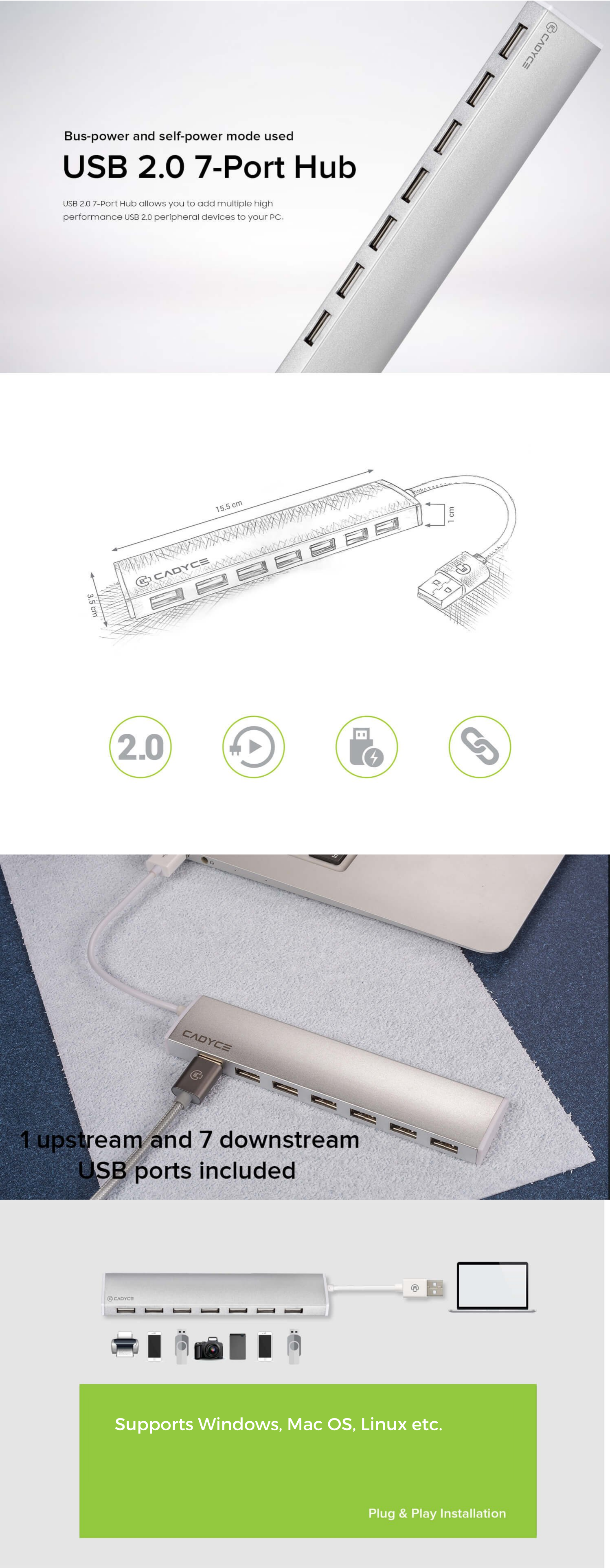 USB 2.0 7-Port Hub allows you to add multiple high performance USB 2.0 peripheral devices to your PC.