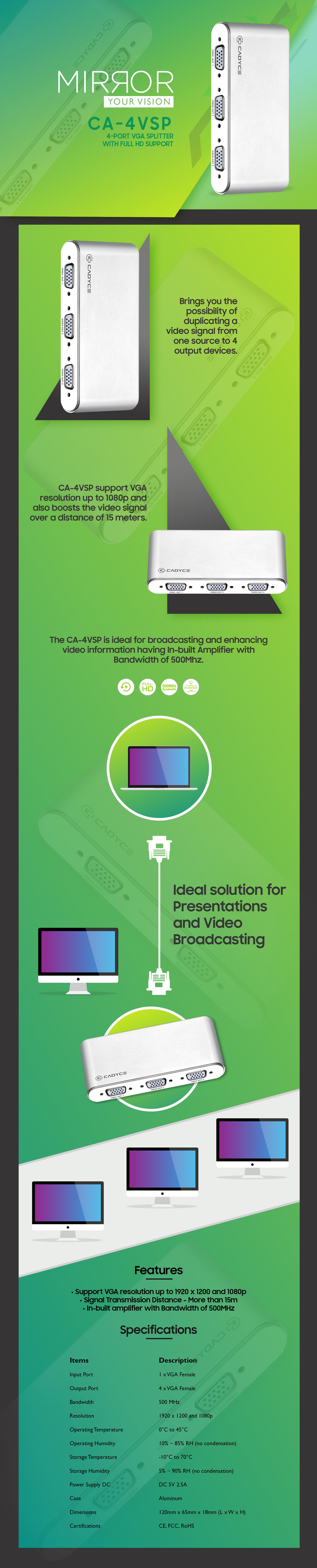 Cadyce CA-4VSP distributes the VGA input signal to four
