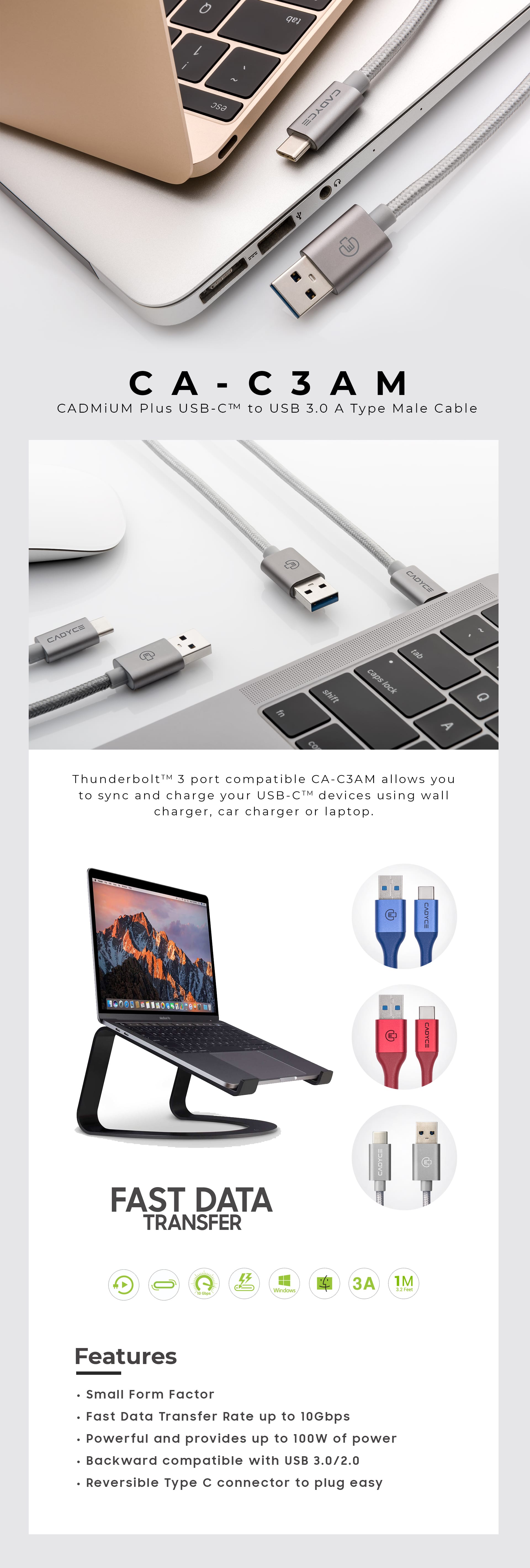 | Connectors | Usb C Type Male USB 3.0 A Type Male |