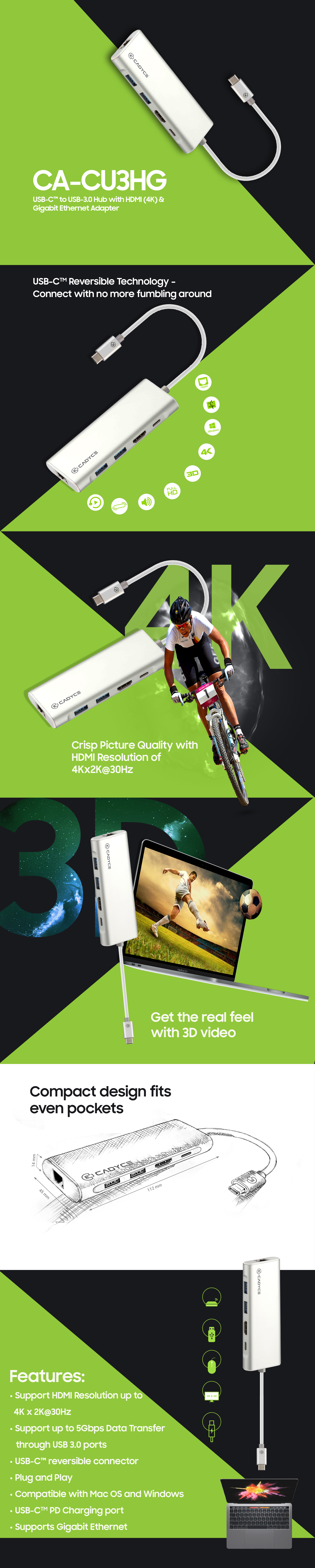 USB-C™ to USB-3.0 Hub with HDMI (4K) & Gigabit Ethernet Adapter